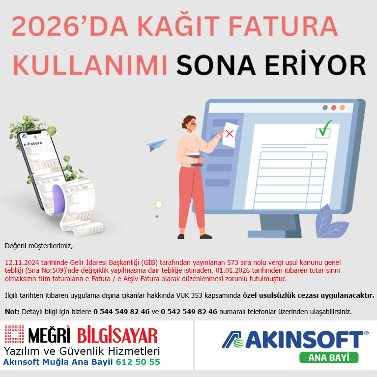 Meğri Bilgisayar firmamız Muğla Akınsoft Ana Bayi olarak Fethiye başta olmak üzere Muğla bölgesinde Akınsoft Sektörel Yazılımların satış ve destek hizmetini vermektedir. Muğla’da Sektörel yazılımlar konusunda öncü olan ticari yazılımlarımızı kullanan mutlu müşterilerimizin sayısı her geçen gün artmaktadır. Fethiye Akınsoft Bayii olarak her geçen gün artan müşteri kitlemizin sektörel yazılım ihtiyacını karşılamaktayız.